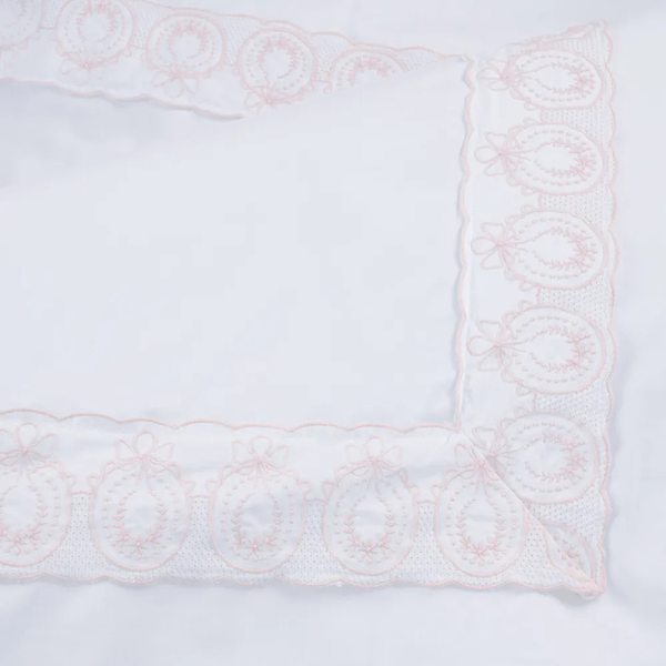 Sobre-lençol com tira bordada aplicada: acabamento elegante e atemporal, ideal para quem busca sofisticação.