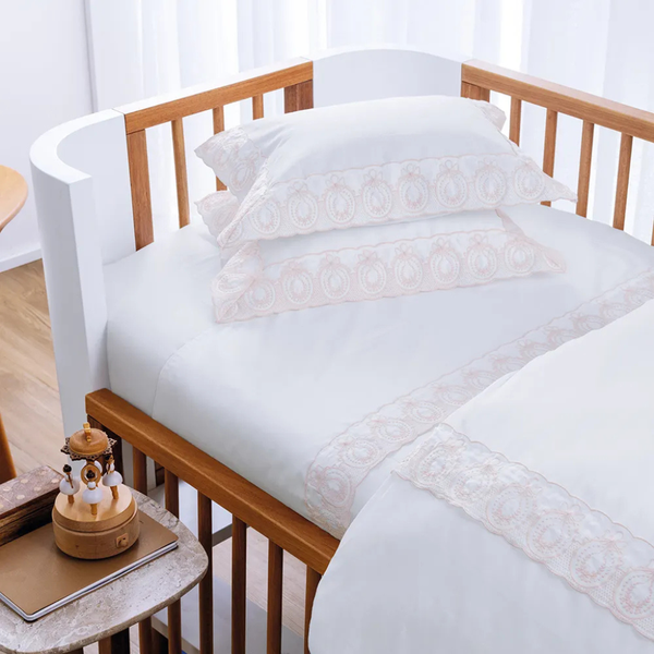 Jogo de Berço Baby 100% Algodão Egípcio Olivia Branco/Soft Nude – Trussardi