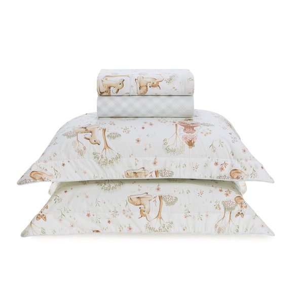 Inspirado na doçura da natureza e em seus encantadores bichinhos da floresta, traz estampas delicadas que despertam a imaginação e tornam o quarto um espaço lúdico, alegre e acolhedor.