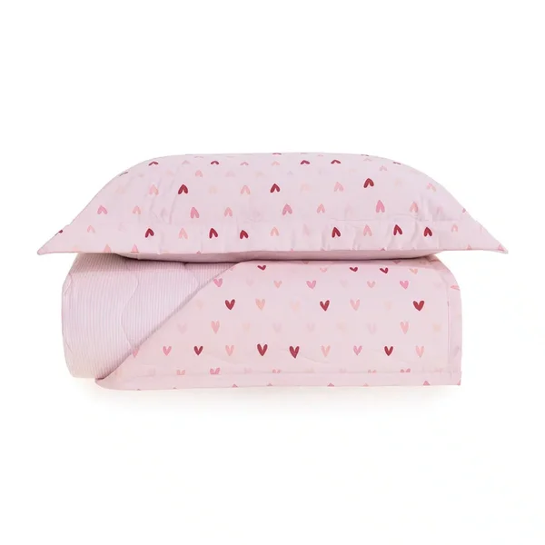 A estampa com delicados corações simboliza afeto e romantismo, trazendo um charme especial à decoração do quarto.