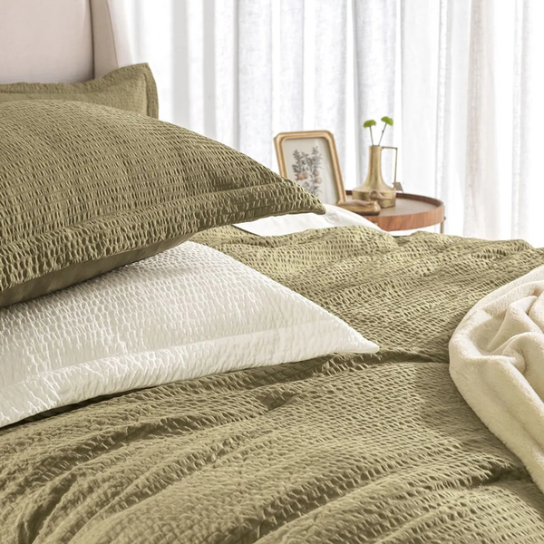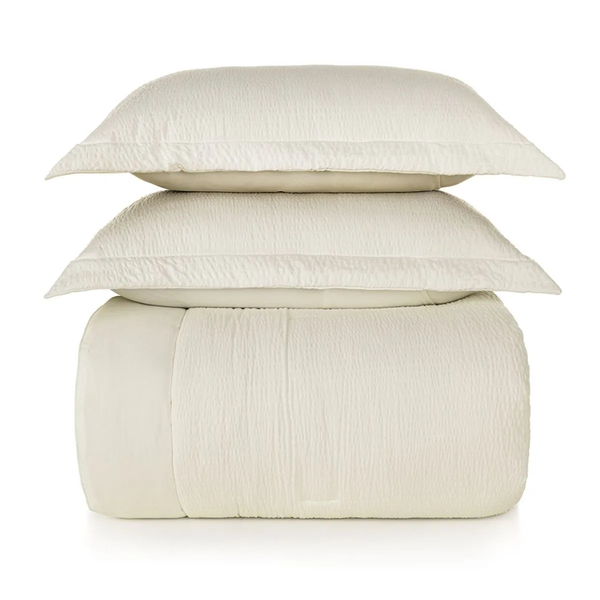 Acompanha 2 porta-travesseiros com acabamento de abas de 5 cm e verso liso, garantindo harmonia perfeita e um toque sofisticado na arrumação da cama.